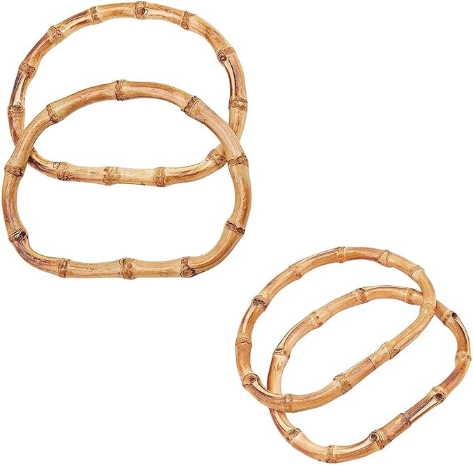 4個セット バッグハンドル D形 バンブー持ち手 竹形 持ち手 スムーズ 和風 バッグハンド 巾着袋 手さげタイプ 交換用ハンドル DIY 手芸用 ナチュラル色