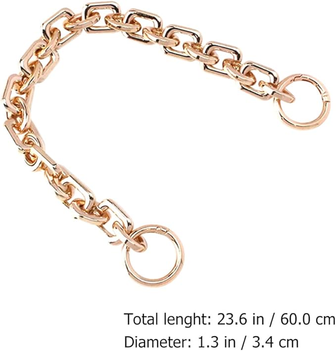 素材と耐食性:本バッグチェーンは亜鉛合金製で、錆びにくく耐食性に優れており、長期間の使用にも適しています。サイズは60cm 3.4cm 1.9cmで、多様なバッグに対応可能です。
