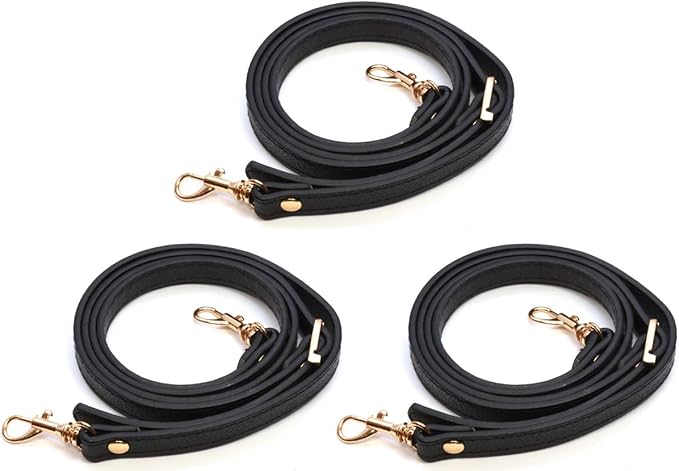 starPG ショルダーストラップ PU レザー がま口 バッグ 持ち手 肩ひも ゴールド金具 120cm 3本セット (ブラック)