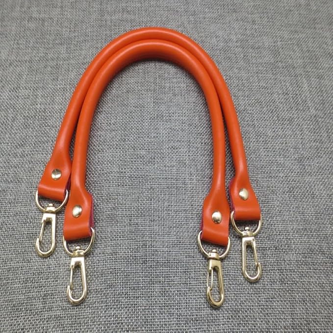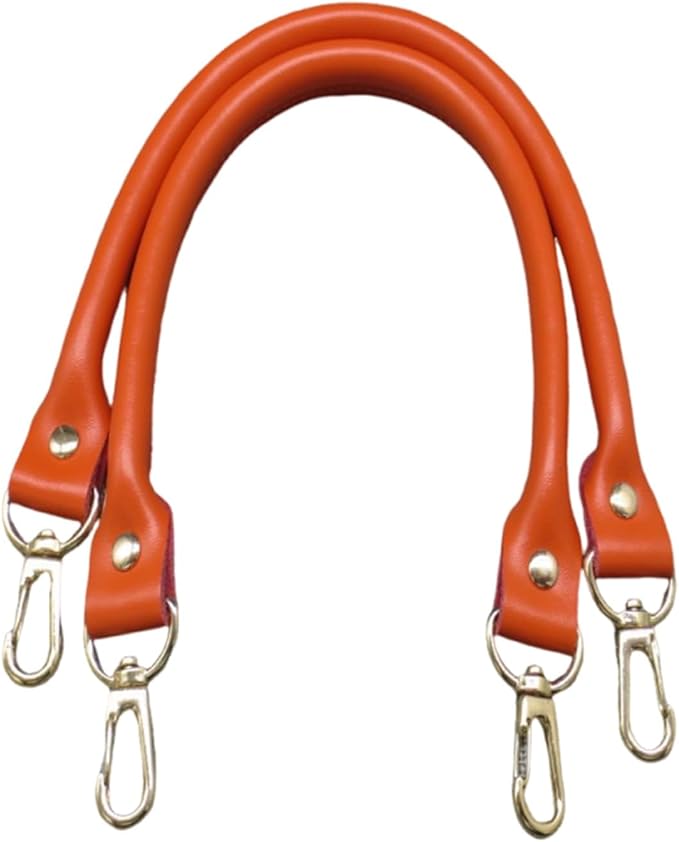 かばん 持ち手 ナスカンホック式 取っ手 着脱式 本革 バンブーハンドル 2本セット DIY バッグ修理用 補修用 バッグハンドル 40cm ビジネスバッグ 交換用 手芸用 取外可能 牛革 リアルレザー 着脱可能 自分で取り替えられる持ち手 (オレンジ.)