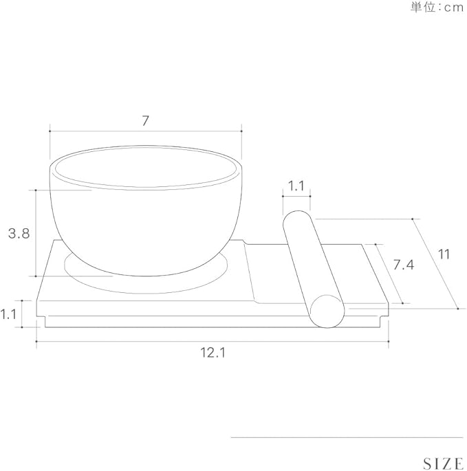 【おりん】:直径7cm、高さ3.8cm【台 座】:幅12.1cm、奥行7.4cm、高さ1.1cm【りん棒】:直径1.1cm、長さ11cm