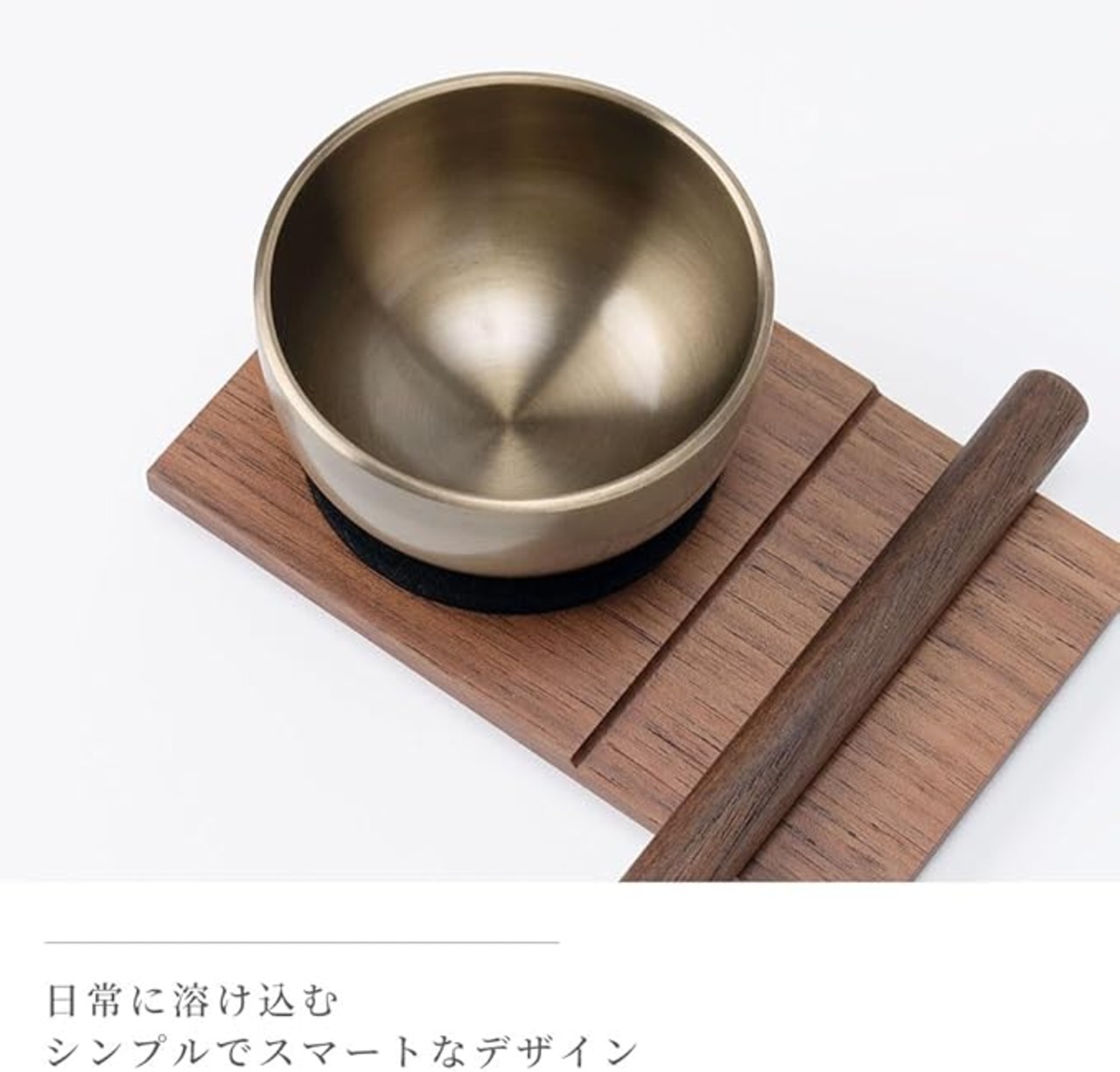 "木"で揃えることができるおりんセット。りん台とバチは、高級家具にも使用されることが多いウォールナットを使用。