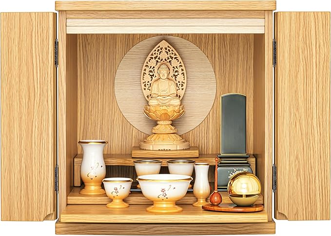 ミニ仏壇 幅 36cm 奥 30cm 高 38cm 須弥壇取り外し可能 家具調 仏壇 モダン ミニ おしゃれ コンパクト 天台宗 真言宗 浄土宗 浄土真宗 臨済宗 曹洞宗 小さい リビング 月しずく タモ