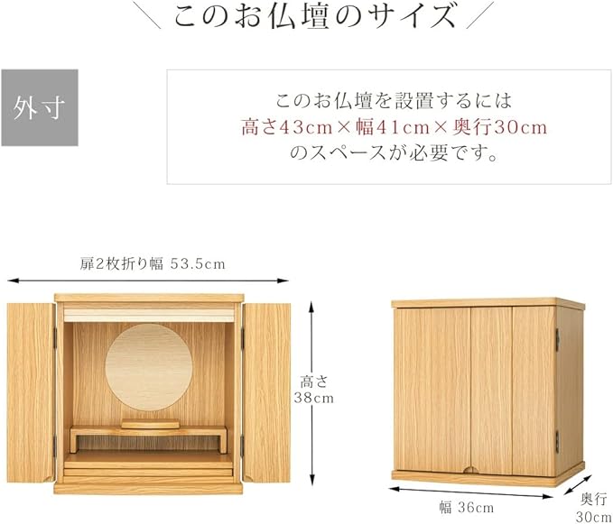※お仏壇のみの販売です。仏具類は付属しません。 ※実際のサイズと若干異なる場合がございます。 ※実際の商品と色味が若干異なって見える場合がございます。