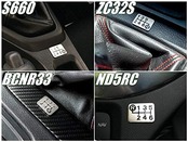 横幅20ミリちょっとのサイズで、貼り付け場所を選ばないよう、自動車HOT純正のシフトパターンラベルとほぼ同寸法としております。