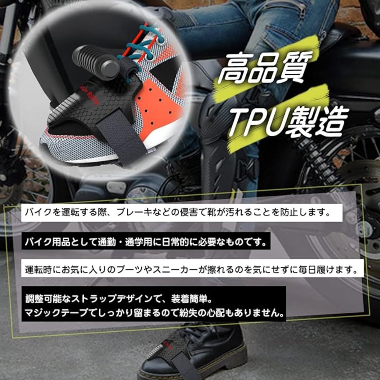 【高品質TPU製造】良質なTPUを使用して製造されています、耐摩耗性が良いです、バイクを運転する際、ブレーキなどの侵害で靴が汚れることを防止します。