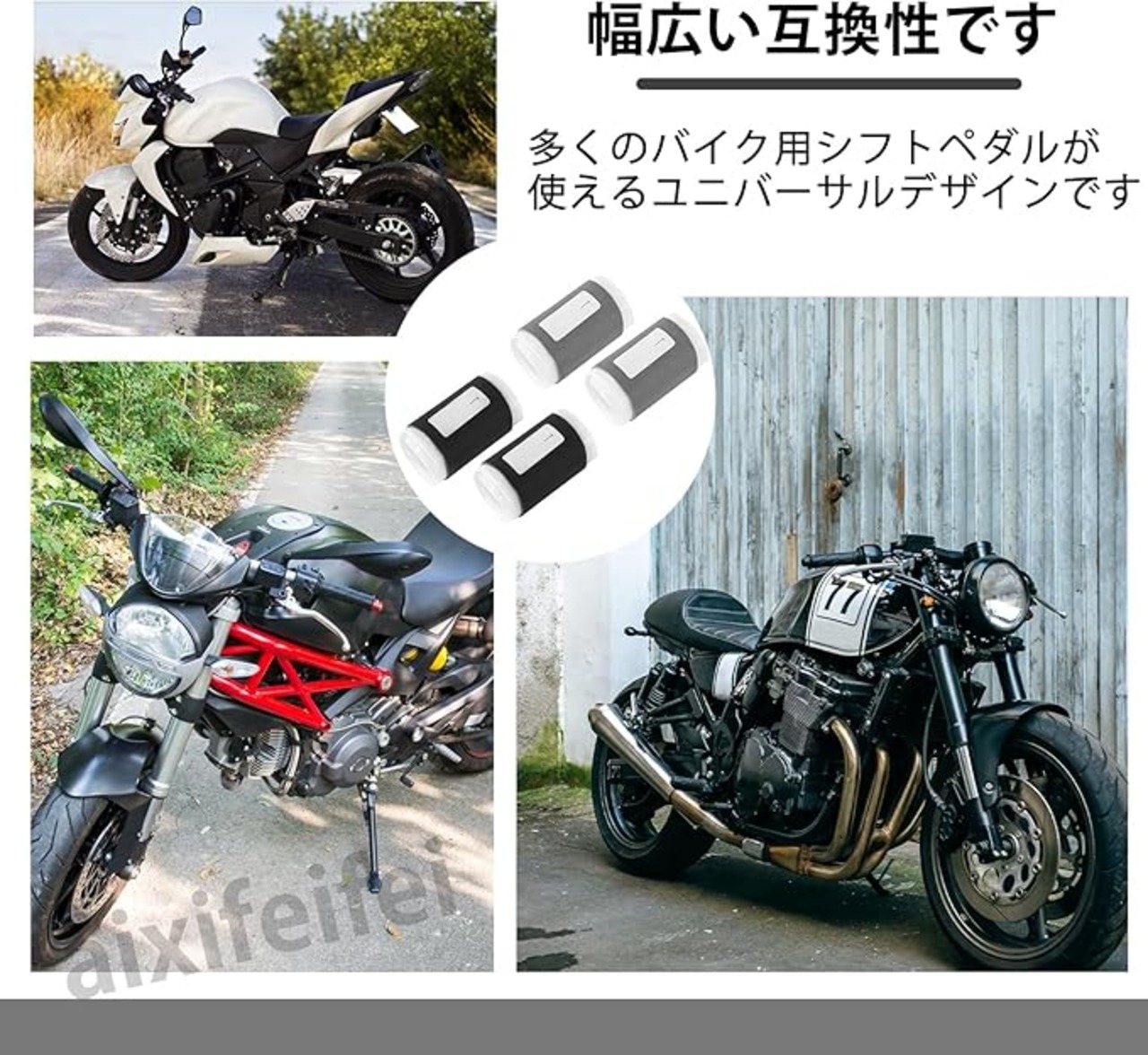 【商品規格】:シフトペダルカバーのサイズは約5 2.5cm、重約10g。1セット4個入り(黒2個・グレー2個)。