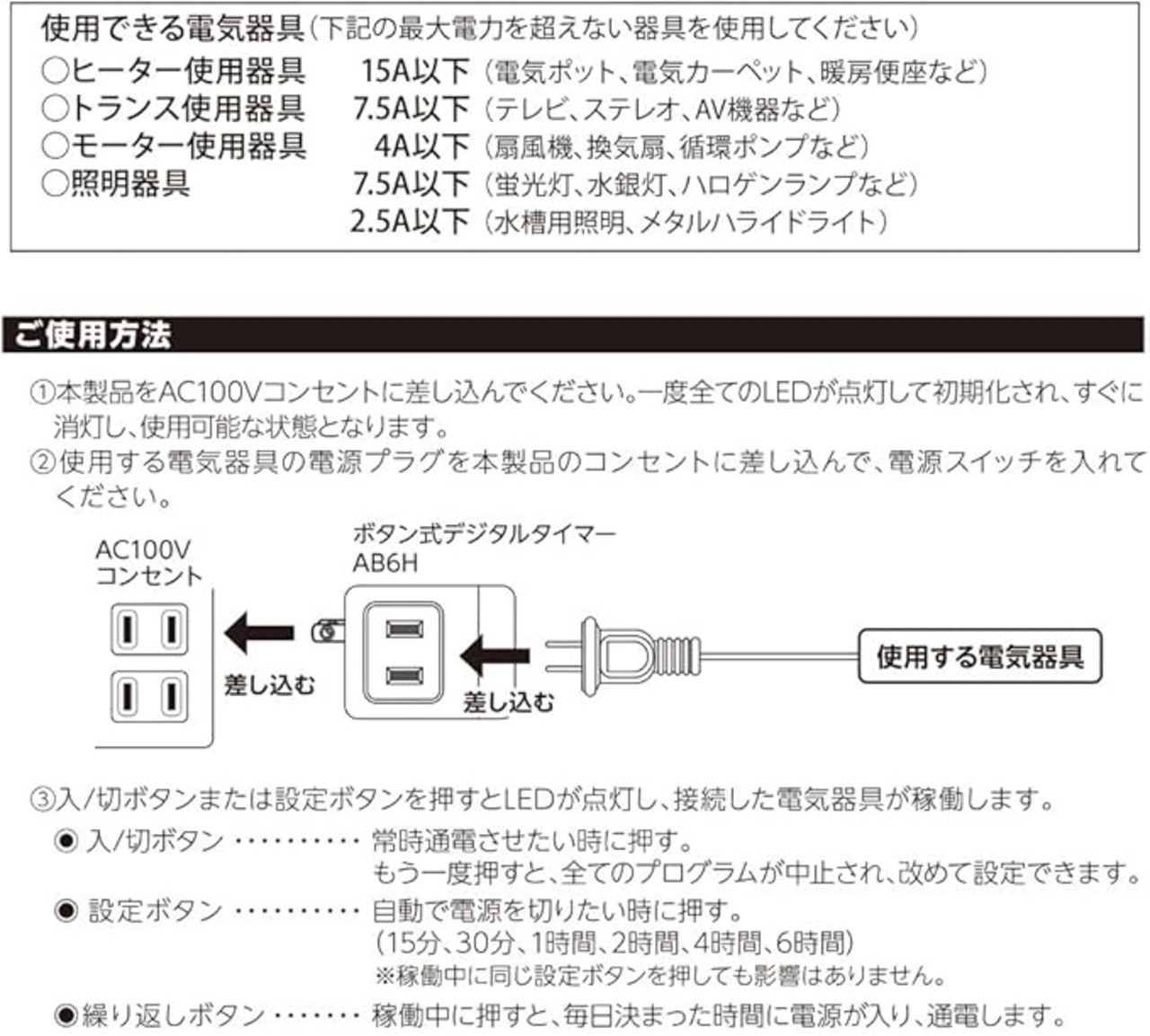 使用する電気器具を本製品のコンセントに差して使用します