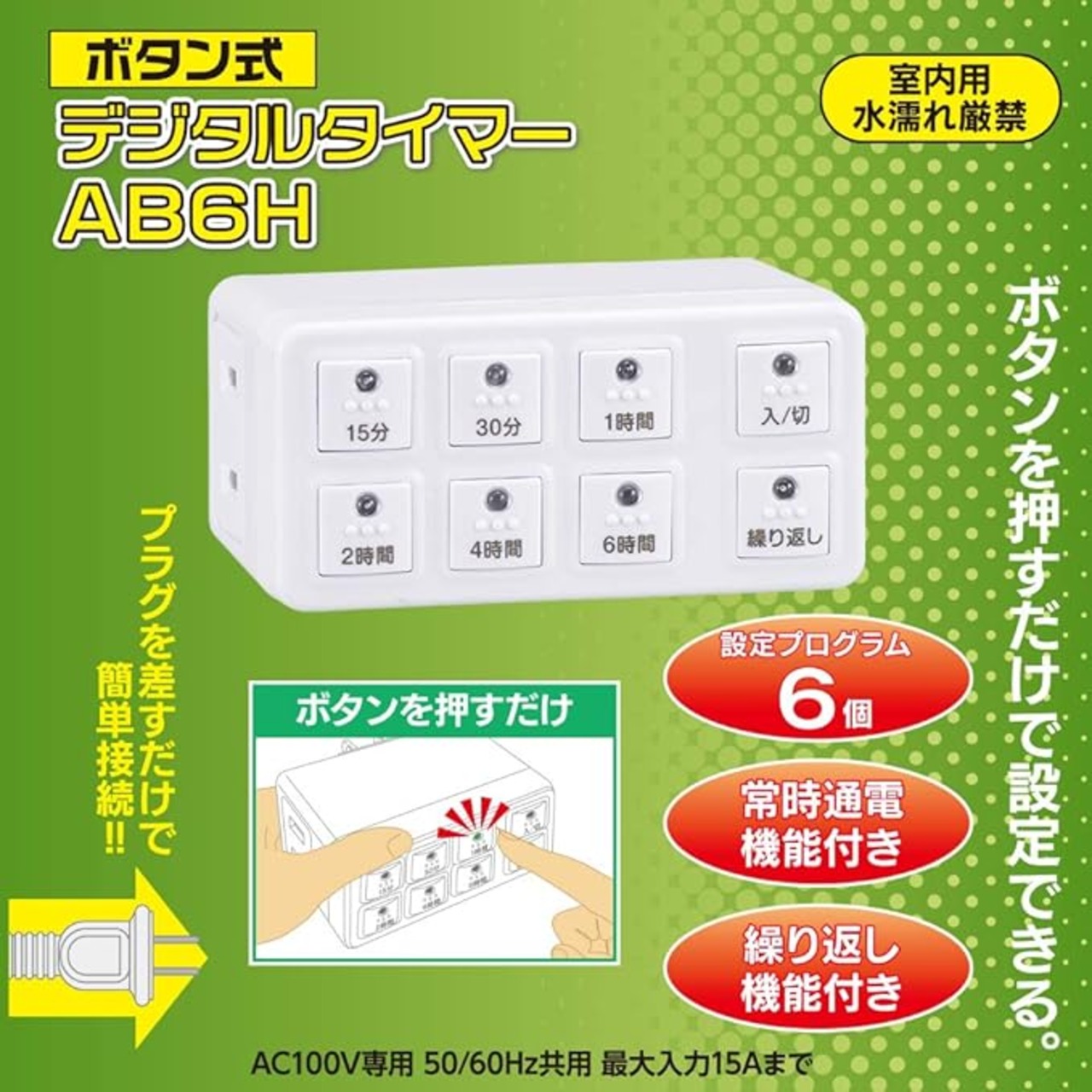 ボタンを選んで押すだけの簡単タイマー設定(設定プログラム6個)