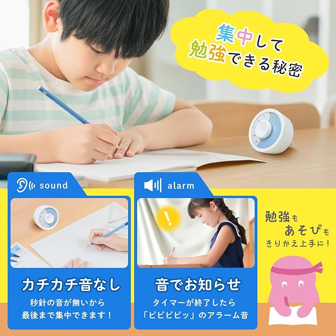 【カチカチ音なし】動作中はカチカチ音が鳴りません。タイマー終了時は「ピーピー」音でお知らせ!