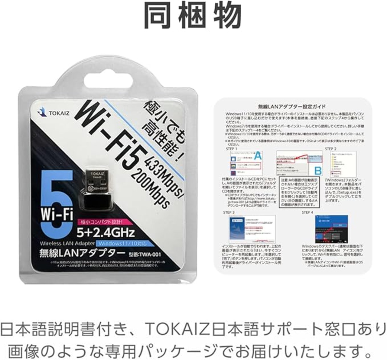 TOKAIZ 無線LAN WiFi 子機 Wi-Fi5 AC対応 無線LANアダプター AC600 2.4GHz 5GHz 433Mbps + 200Mbps 超小型 usb無線アダプター Windows/Mac OS 対応