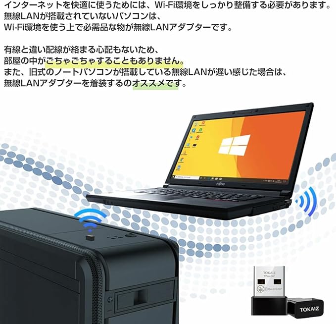 旧式のノートパソコンが搭載している無線LANが遅い感じた場合は、 無線LANアダプターを着装するのオススメです。