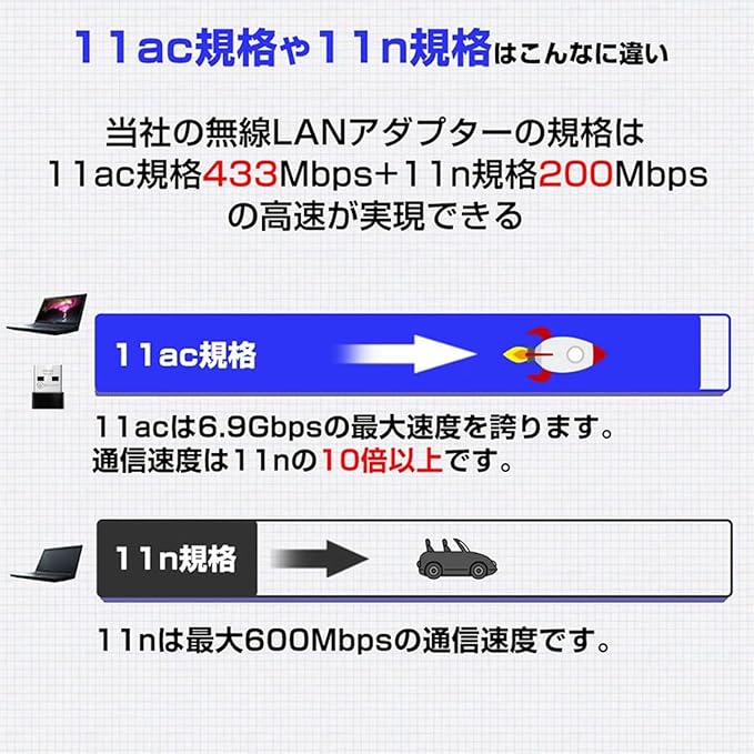 11ac規格433Mbps+11n規格200Mbpsの高速が実現できます!