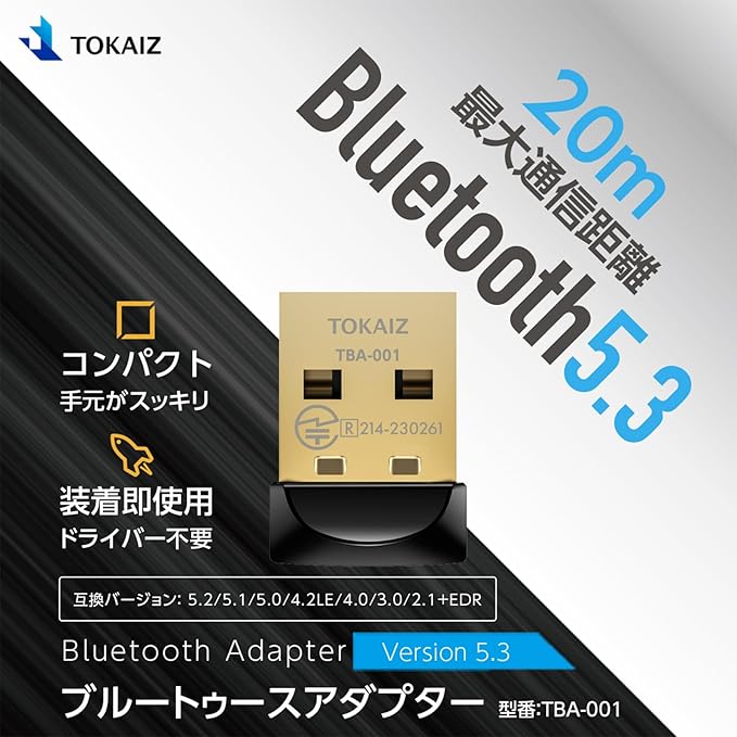 TOKAIZ bluetooth アダプター 5.3 レシーバー USB 子機 ドライバー不要 ブルートゥース ワイヤレス イヤホン コントローラー マウス キーボード 7つのディバイス追加可能 Windows 11 10 8.1 7 TBA-001