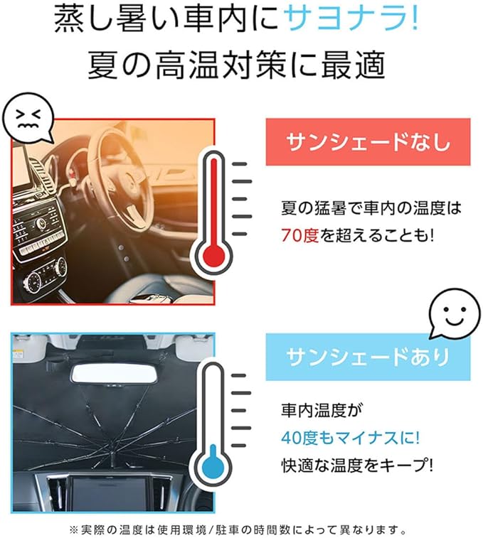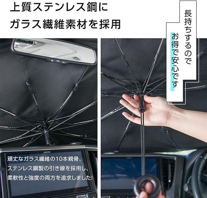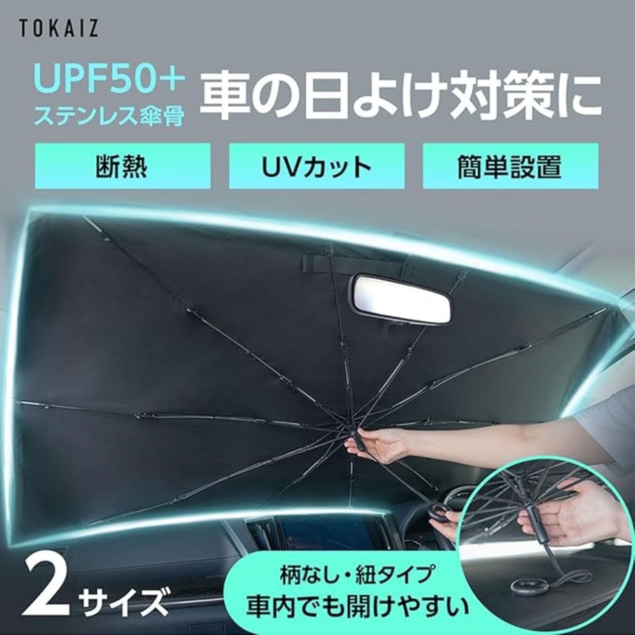 TOKAIZ サンシェード 車 フロント 柄がない 傘型 軽自動車からMPV 汎用 フロントガラス 車中泊 UVカット 傘式 遮光 遮熱 日よけ 収納ケース付き 10本骨 TUS-001 (L)