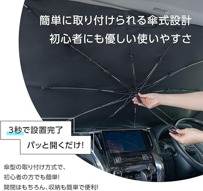 【傘式で取り付け簡単】初心車にも優しい使いやすさ!開閉はもちろん、収納も簡単!