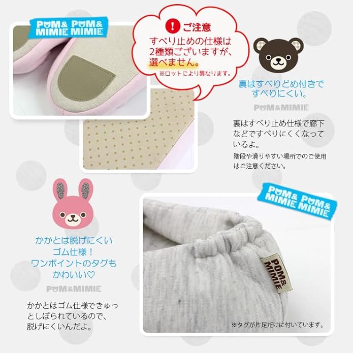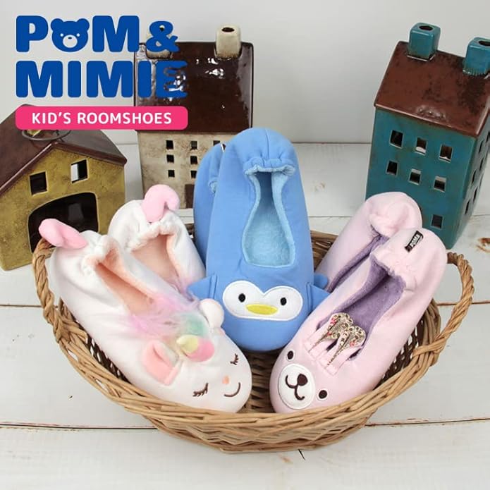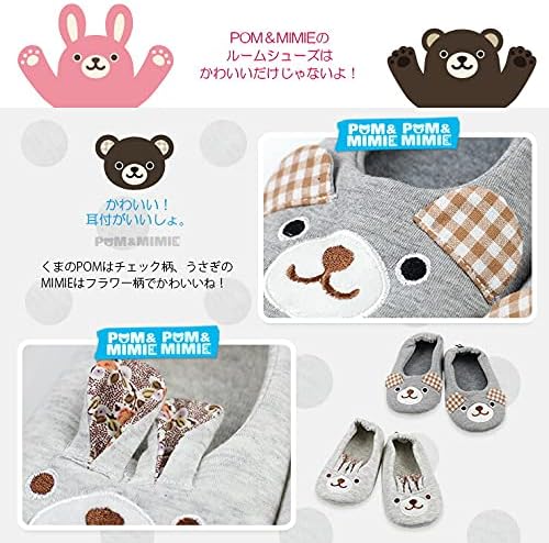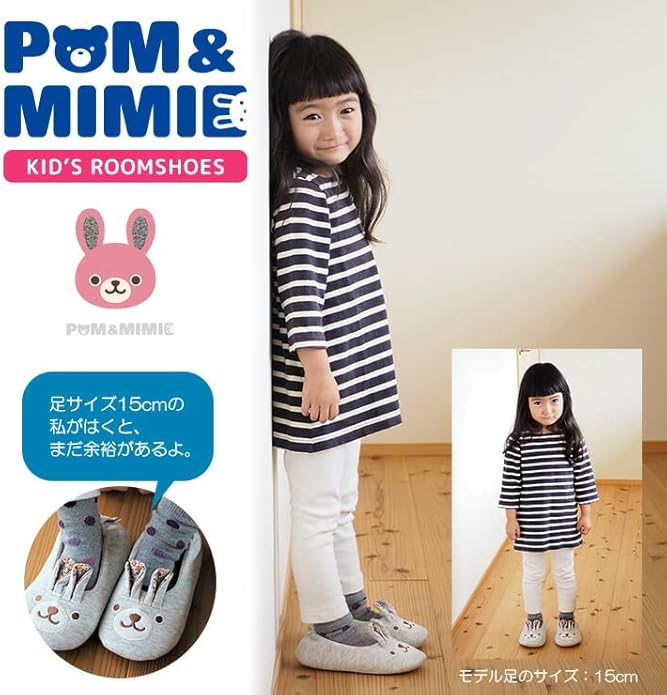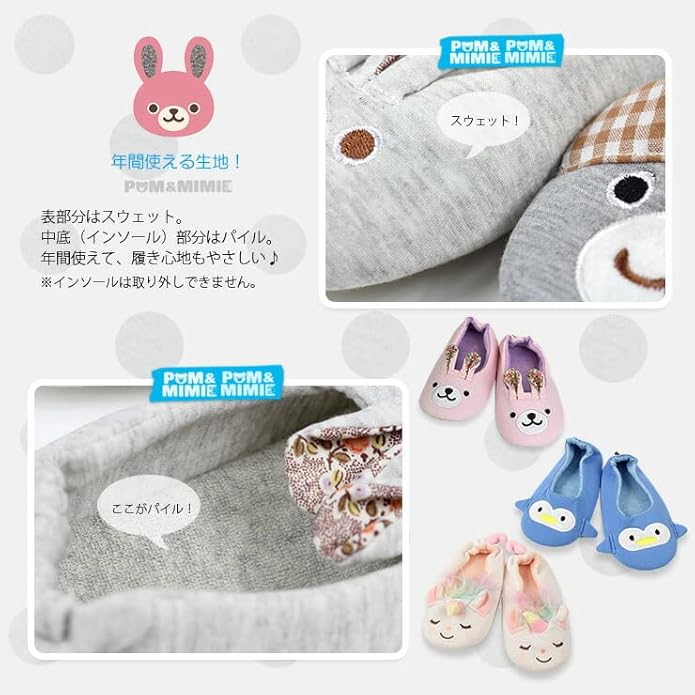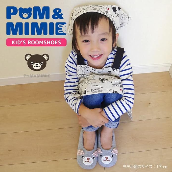 [POM&MIMIE] キッズ ルームシューズ スウェットパイル 子供用 滑り止め付き かかとあり 室内 スリッパ 動物 男の子 女の子