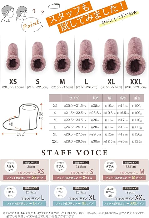❄【あったかスリッパ素材または裏地】ボアスリッパ毛羽部分:ポリエステル100%(マイクロファイバー繊維)中材:PVC製中板【高繊維綿素材 裸足ではいても気持ちいい 】綿毛が密生しており保温力に優れ、光沢に富んだシルキ- -なタッチ。【高繊維綿素材 裸足ではいても気持ちいい 】綿毛が密生しており保温力に優れ、光沢に富んだシルキ- -なタッチ。【サイズ(外寸)】❄ Mサイズ22.5~24.5cm(長さ:約26cm/幅:約11cm/高さ:約17cm/重さ:約214g);❄Lサイズ24.5~26.0cm(長さ:約28cm/幅:約11cm/高さ:約18cm/重さ:約235g);❄XLサイズ26.5~27.5cm(長さ:約29.5cm/幅:約12cm/高さ:約19cm/重さ:約249g);❄XXLサイズ28~29.5.cm(長さ:約30cm/幅:約12.5cm/高さ:約20cm/重さ:約282g)