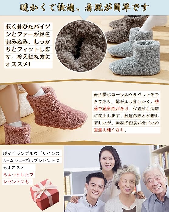 ❄❄【寒さ対策と&ツふわふわ暖かい&ご家庭の洗濯機で洗えます】おかげさまで累計販売個数100000足突破。アッパーも足底も総ボア仕様、足入れした瞬間ふんわり包まれる。靴下の上からはもちろん、素足ではいても履き心地です。また、ソール部分はクッション性を高めるために、ウレタンシートを入れ、長時間履いても足が痛くなりません。 冷え性な方にオススメ!これは冬の必需品であり、 両親、友人、愛する人への素晴らしい贈り物です。