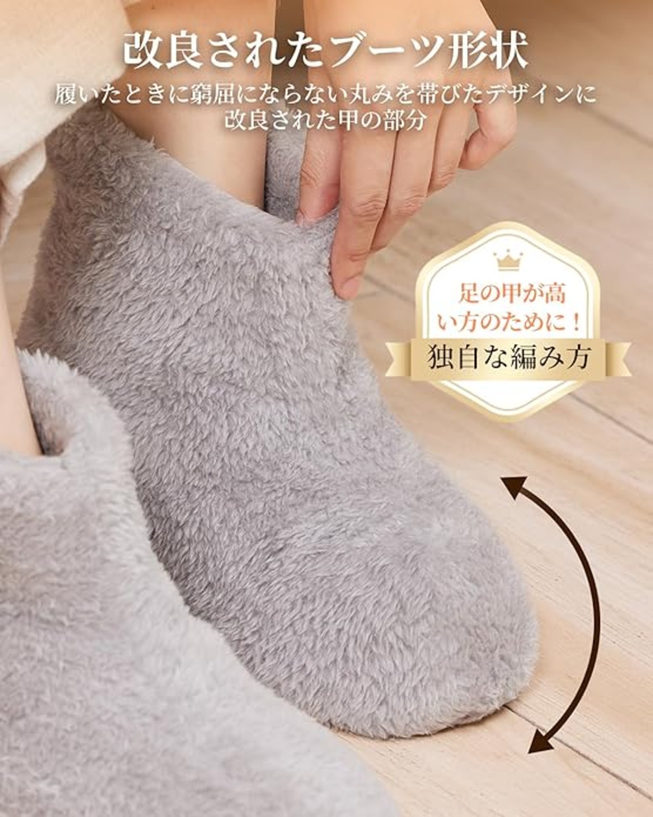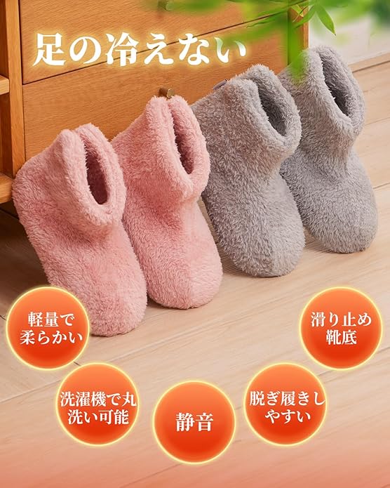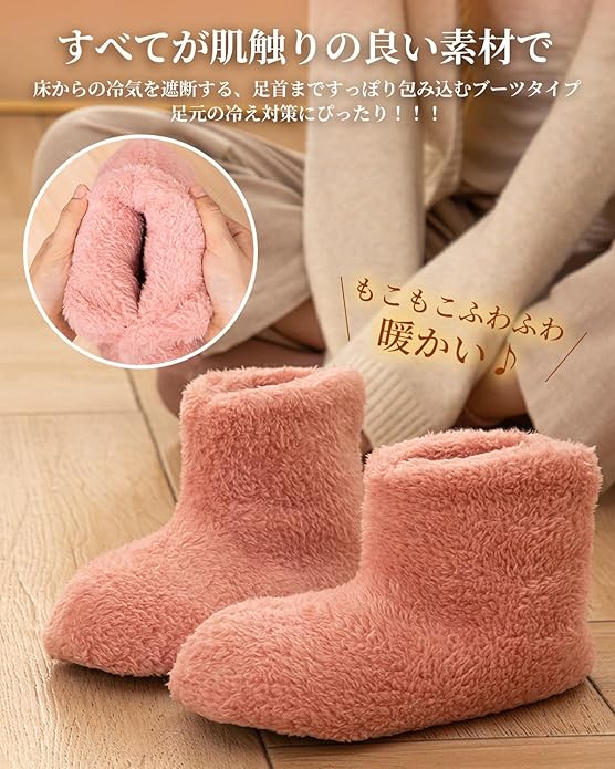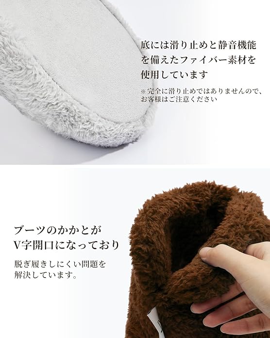 【やわらかで脱ぎ履きしやすく】このルームシューズは足首までしっかり暖めることが出来る様にブーツタイプを採用しているため、履いたり脱いだりする際の、履きやすさ・脱ぎやすさにこだわり、背面にV字のスリットを入れ問題を解消しています。抗菌防臭・静電気防止加工済み。