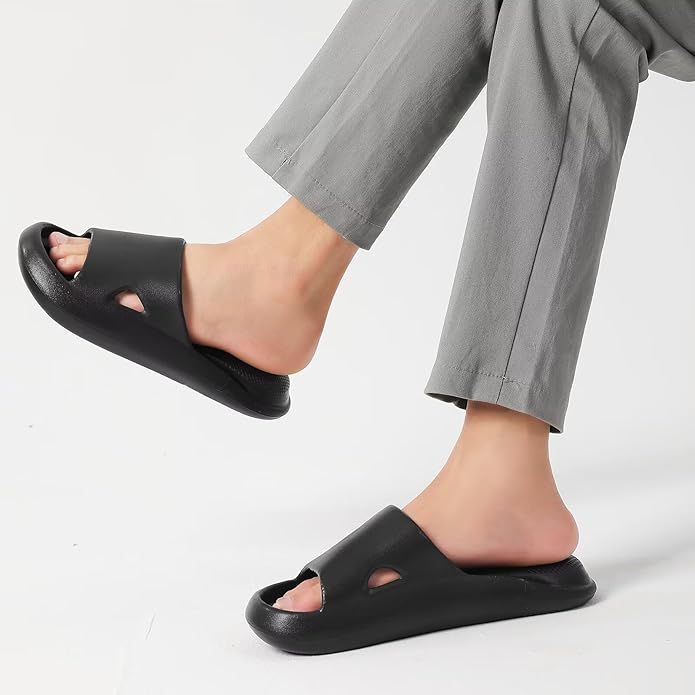 【衝撃吸収 長時間快適】厚底4cmの多層クッションが優れた弾力を発揮。へこみにくく、適度な反発力で長時間立っても疲れにくい設計です。追加のエアクッションで衝撃吸収力アップ!通勤・立ち仕事にぴったりの室内用スリッパ。