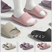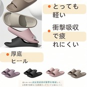 【ふんわりスリッパ足にやさしい適度な柔らかさとフィット感で快適な履き心地】 ほどよい弾力性と柔軟性をもつEVA素材を使用した厚さ約3.5cmの厚底クッションが、快適な履き心地をご提供します。かかと部分はカップ形状となっており、程よいフィット感で足元をサポートするルームシューズ ( スリッパ / サンダル )です。