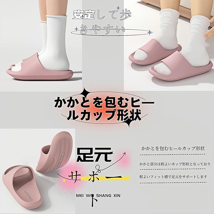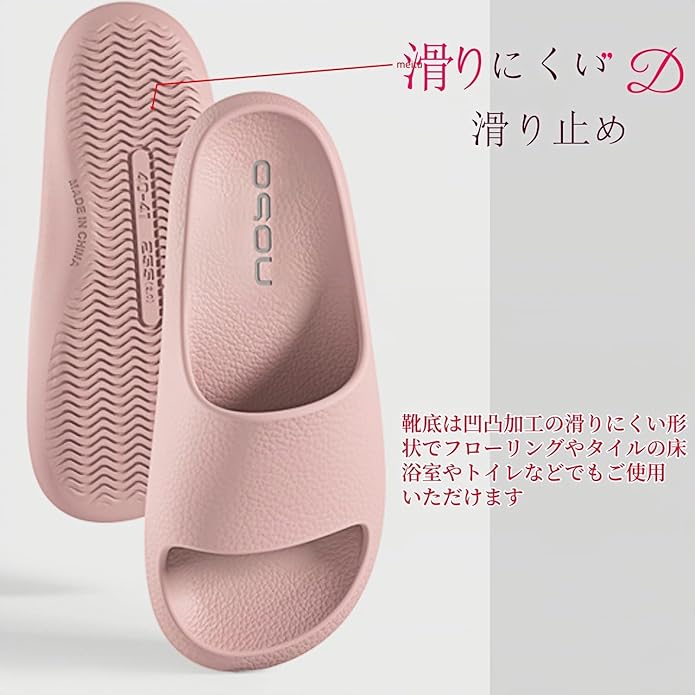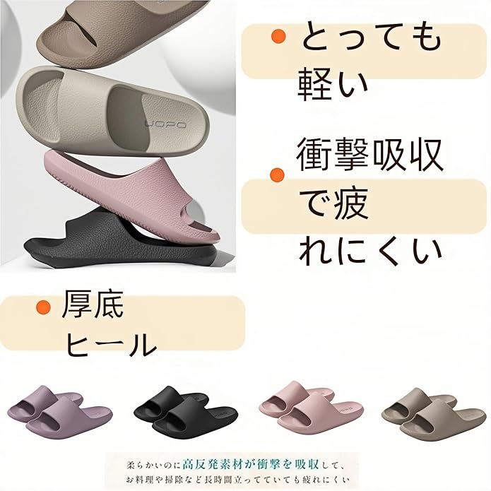 【ふんわりスリッパ超軽量&滑りどめ加工で疲れにくく歩きやすい】 厚底なのに、超軽量スリッパ・サンダルです(サイズによって重量が多少異なります)。とっても軽いから長時間履いても足への負担が小さくラクちんです。 靴底は凸凹加工で、フローリングやタイルの床はもちろん、浴室やトイレなど濡れた地面も安全に歩けます。