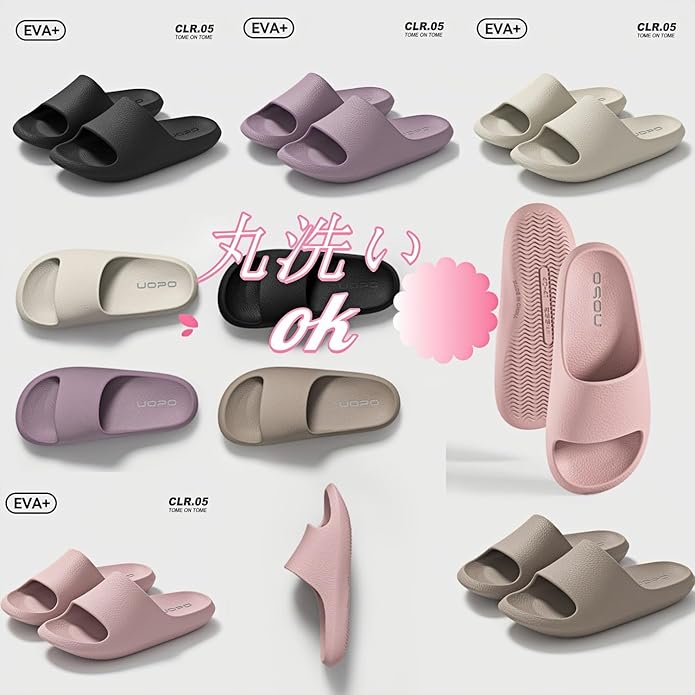 【ふんわりスリッパ丸洗いOKでお手入がとっても簡単】 ジョイントマットなどに使用されるEVA素材を使用しており、水を吸収しない素材のため、丸洗いができるのでお手入がとっても簡単なスリッパ・サンダルです。水洗い後はタオルで水分をふき取ってください ※直射日光や高温環境に長時間さらされると劣化が進行しやすいため、天日干しはご遠慮ください。