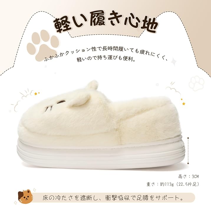 [Ulogu]ねこスリッパ 冬用サンダル レディース メンズ ルームシューズ 防寒 軽量 厚底 滑り止め ふわふわ 室内履き オフィス用