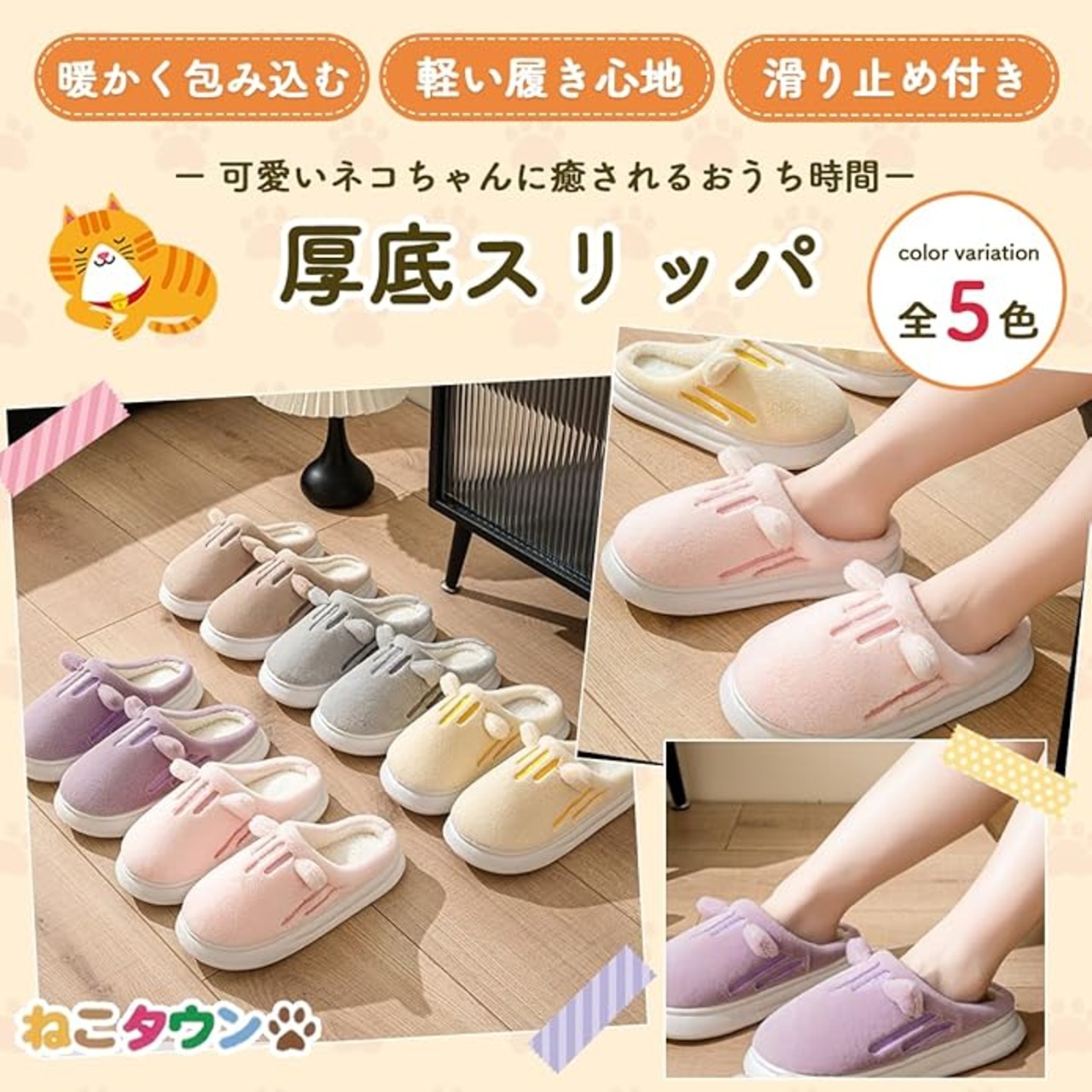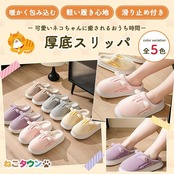 [ねこタウン] 厚底スリッパ レディース 猫 ねこ スリッパ ルームシューズ 室内 もこもこ 暖かい 軽い 滑り止め