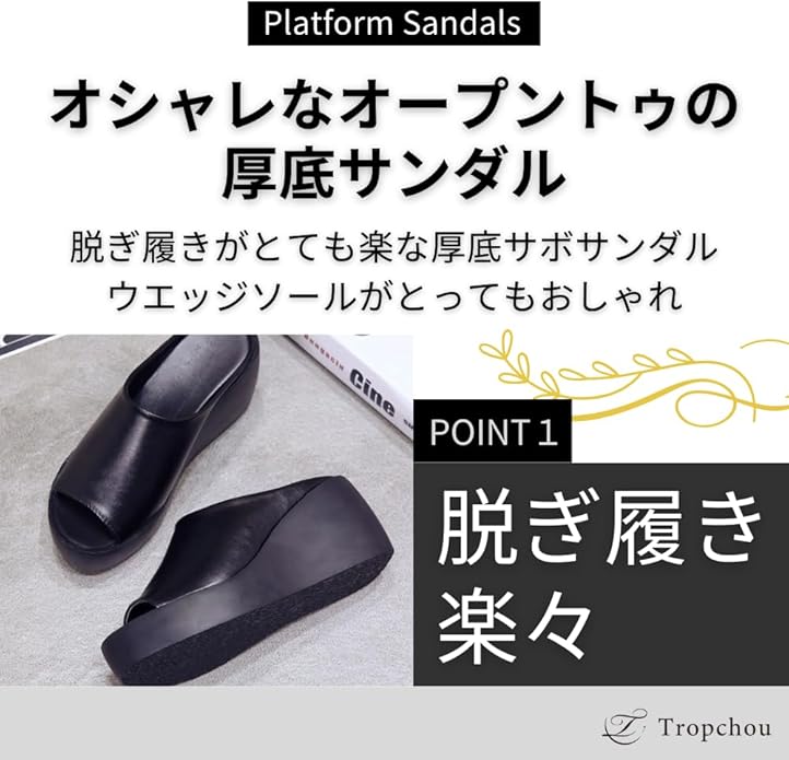 [Tropchou] 厚底 レディース サンダル スリッパ オフィス 室内 ミュール サボ 軽い 履きやすい オープン