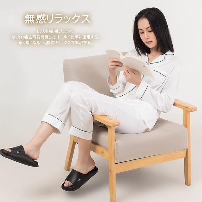 ●【理学療法士が推奨モデ 腰・足裏の痛みを激減!】Alvisto独自開発した無重力リラックスサンダル。穿く感じがない、無感リラックスを実現しました。ソール4㎝の厚底には数層の強い弾力性を持つマットがあるので、フワフワとほどよい弾力があり弾む感じで履き心地がよく、柔らか過ぎず硬すぎず、長時間使っても凹まず、踏みしめたときの適度な弾力もよいので、長時間立っても疲れや痛みを感じにくく、一日酷使した脚を労る一足。踵部分にはエアクッションをさらに入れたため、地面からの衝撃を100%吸収し、★短距離の通勤用や室内・ベランダやゴミ出し用・介護の仕事の方や立ち仕事用などにはしっかりサポートできるふわ楽室内エアースリッパ!