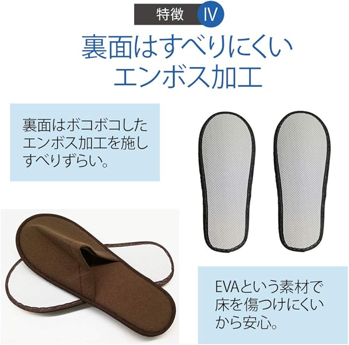 【ふわふわで足が痛くならない】裏面は滑りにくいエンボス加工がしてあり、ホテル等で快適に利用できます。