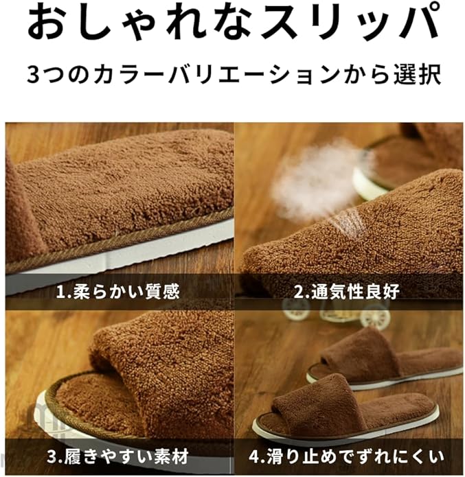 【高級感のあるベルベット生地】ふわふわで肌触りのよい生地を採用し、快適な履き心地と通気性のよさを両立しています。抗菌防臭効果もあり清潔に使用できます。高級感ある見た目のおしゃれな使い捨てスリッパです。