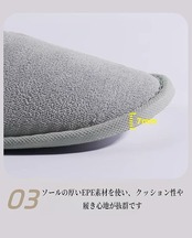 これらのスリッパは、室内で履くのに最適な軽量で快適な履物です。柔らかな生地で作られており、足に優しくフィットします。デザインはシンプルで洗練されており、どんな部屋の雰囲気にも馴染みます。旅行先のホテルや自宅でくつろぐ時に、足元を温かく包んでくれるでしょう。