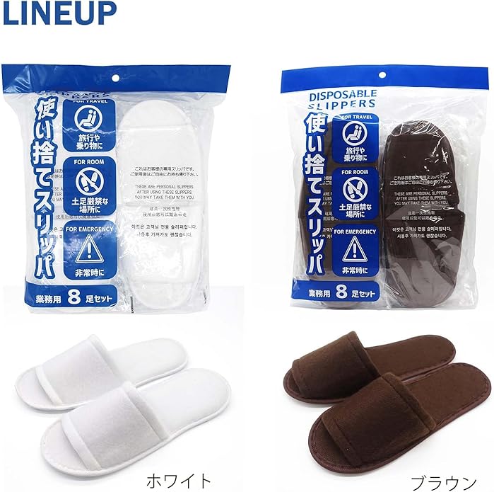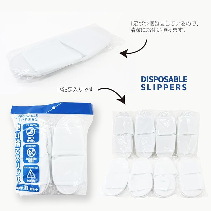 適応サイズ:約23~27cm / セット内容:使い捨てスリッパ 8足(1足ずつ個包装)