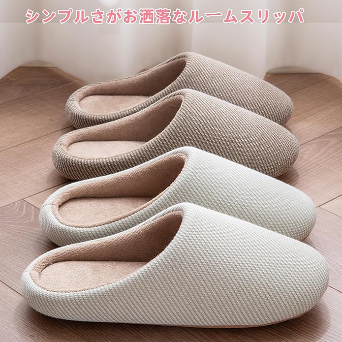 【シンプルなデザイン】インテリアになるおしゃれスリッパ!ナチュラルなので男女兼用なスリッパです。実用性とデザインに優れた柔らかいスリッパです。手触りが快適な素材を採用され、通気性が良く、吸収性や発散性に優れており、防臭効果があります。見た目もおしゃれな柄で、和風なお家、洋風なお家両方の玄関どちらに置いてあっても違和感はありません。