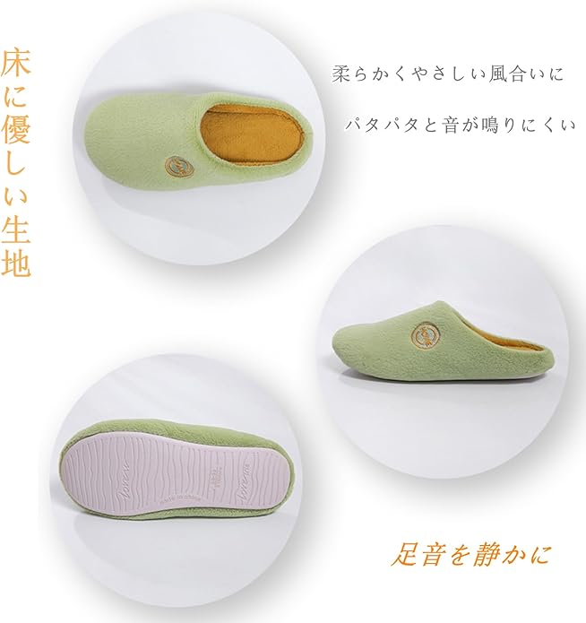 【静音&滑り止め】改善された耐久性のある柔らかい防水TPRゴム底は、屋内や中程度の屋外での使用に最適!TPR素材のソフトラバーソールは、優れた滑り抵抗を持っています。静音素材で、歩いた時にバタバタと音が鳴りにくいです。静音効果抜群、弾性高くて耐震減圧、クッション能力が高くて、足をしっかり保護できます。
