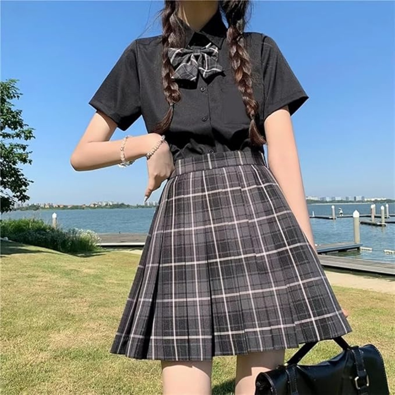 【人気のスタイル】JKユニフォームが今日一番人気の要素です。 無地のシャツ、Tシャツ、セーター、スーツ、ユニフォームとのマッチングをお勧めします。 JKスカートは若くてファッショナブルな女子学生に最適です。大胆で目立つカラーマッチをお楽しみください。 バックルを調整してスカートをよりフィットさせて美しくすることでサイズを調整することもできます, で可愛く見せる丁度良い長さです。