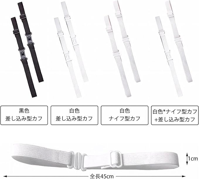【製品仕様】延長ストラップ2本がセットになっており、カラーはブラックとホワイトをご用意しております。留め具の種類は差し込み型/フック型の 2 種類。ほとんどのJK制服のリボンに適しています。長さは自由に調節可能(45cm)なので、蝶ネクタイが短すぎるという問題を簡単に解決できます。