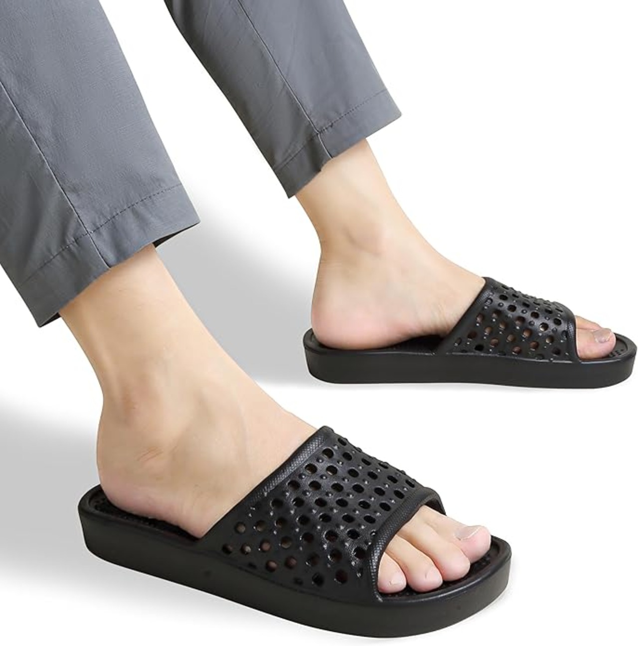 【プロ級の防滑設計】滑らないサンダル、底部に特殊凹凸パターン採用、浴室や脱衣所の水はけを促進し、滑りやすい場所でも安定した歩行をサポート。