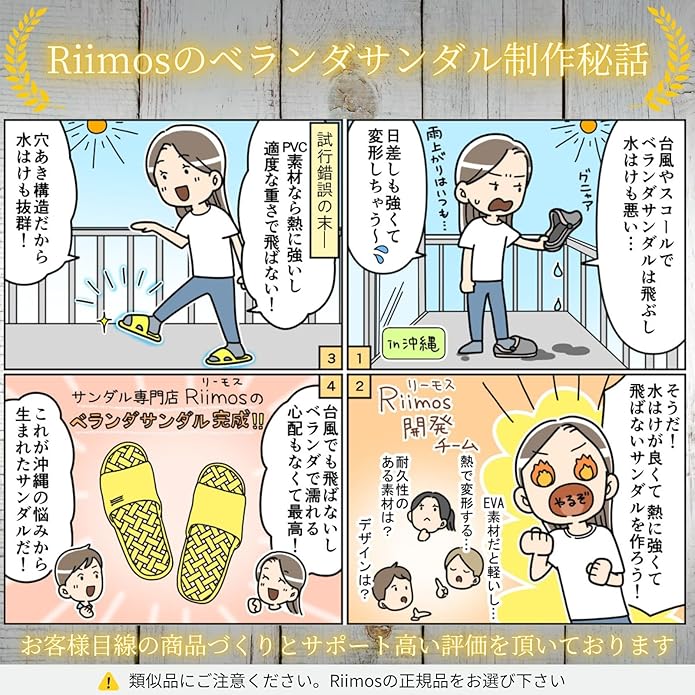 【程よい重さで風で飛ばない】Riimosのベランダサンダルは適度な重さがあるので、外に出しっぱなしにしていても風で飛ばされる心配は少ないです。マンションに住んでいる方は特におすすめです。