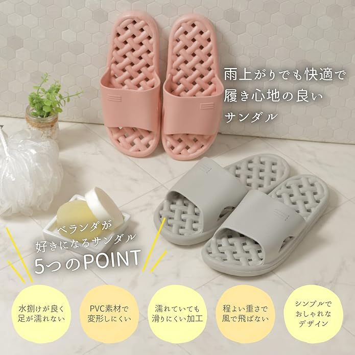 [Riimos] リーモス ベランダ サンダル 穴あき 縮まない PVC 水が溜まらない バス スリッパ