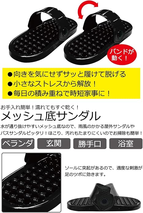 [Destyle] どちらからも履けちゃう! ベランダ スリッパ サンダル すぐに乾く ちょっぴり足つぼ効果も (ブラック)