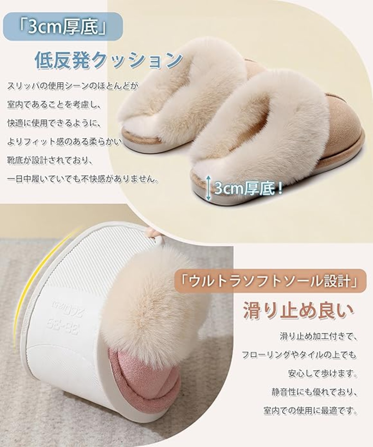 [Lavento] スリッパ 冬用 ルームシューズ モコモコ 【履くと瞬間暖かい・極厚裏パイル・極上のふんわり感】 スリッパ 室内 ルームシューズ 来客用 暖かい 防寒 保温 消臭 かわいい 低反発 滑り止め 厚底 洗濯可 男女兼用