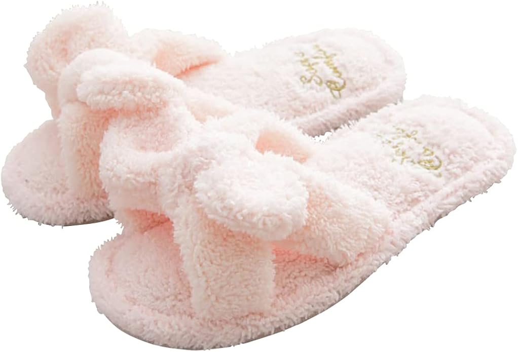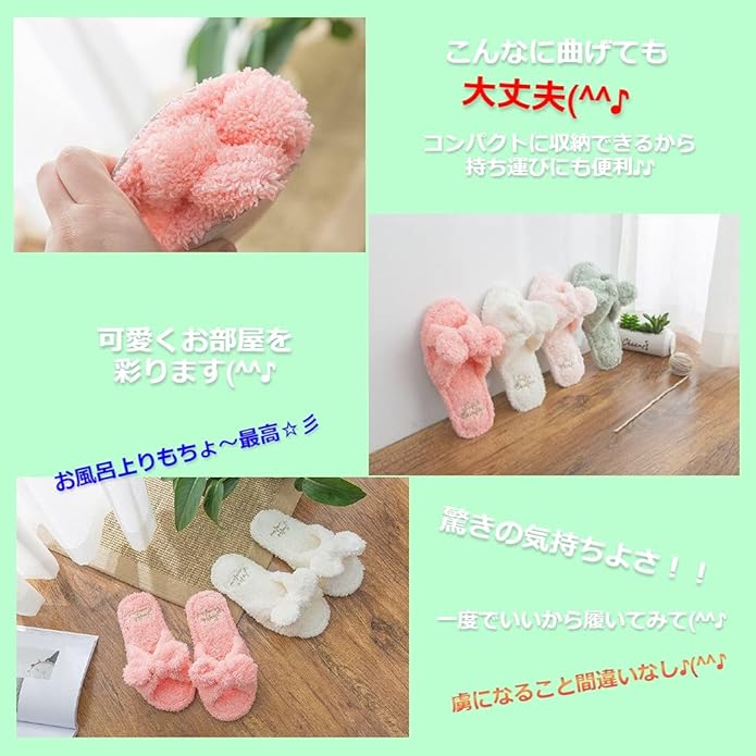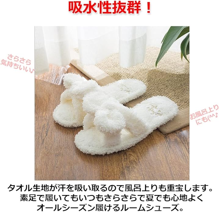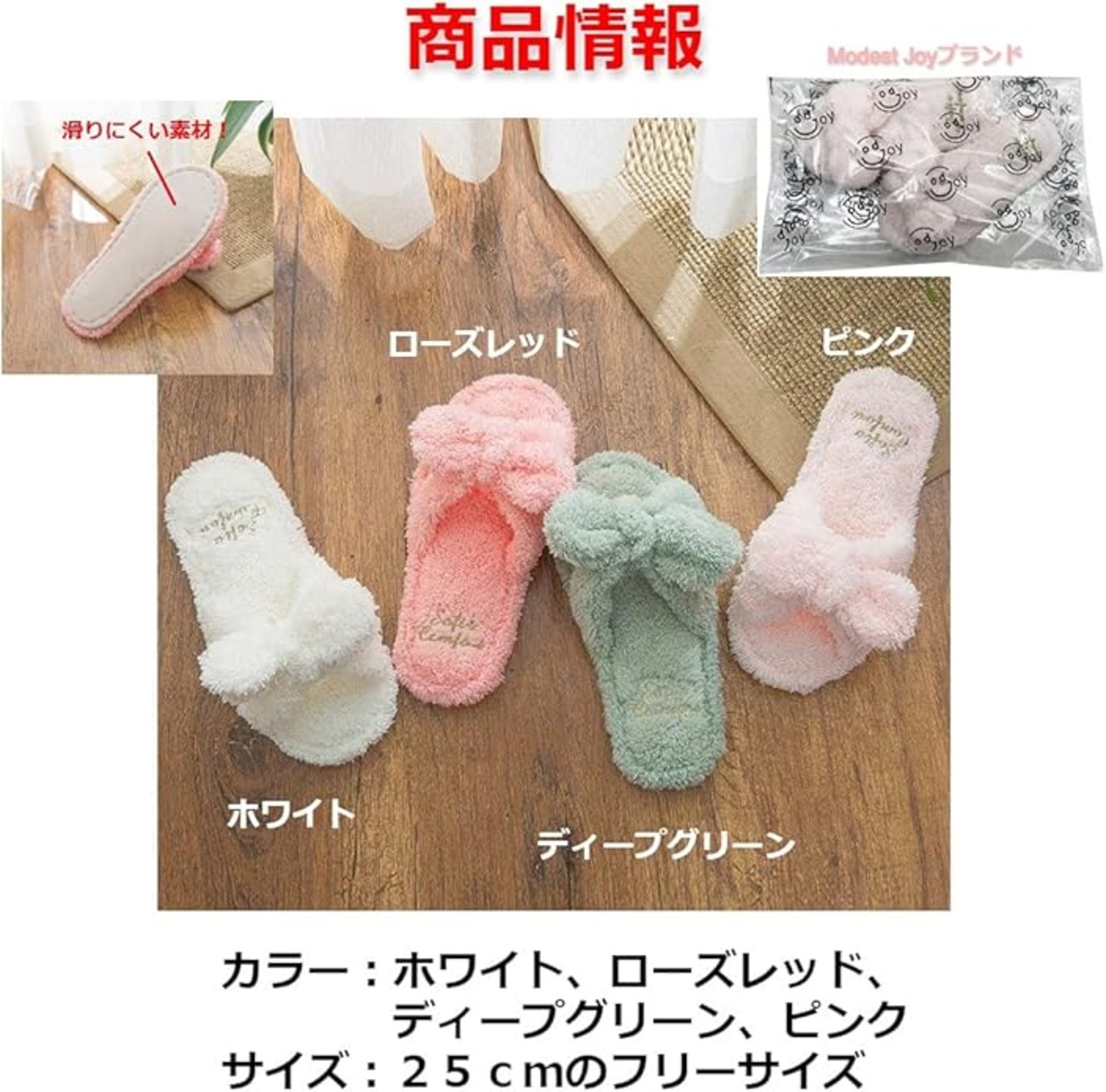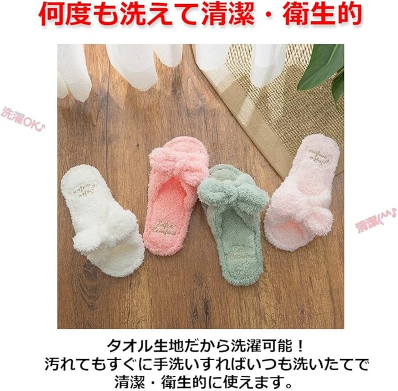 [Modest Joy] 洗える リボン スリッパ ルームシューズ レディース モコモコ タオル地 清潔 おしゃれ かわいい 持ち運び 刺繍 レディース