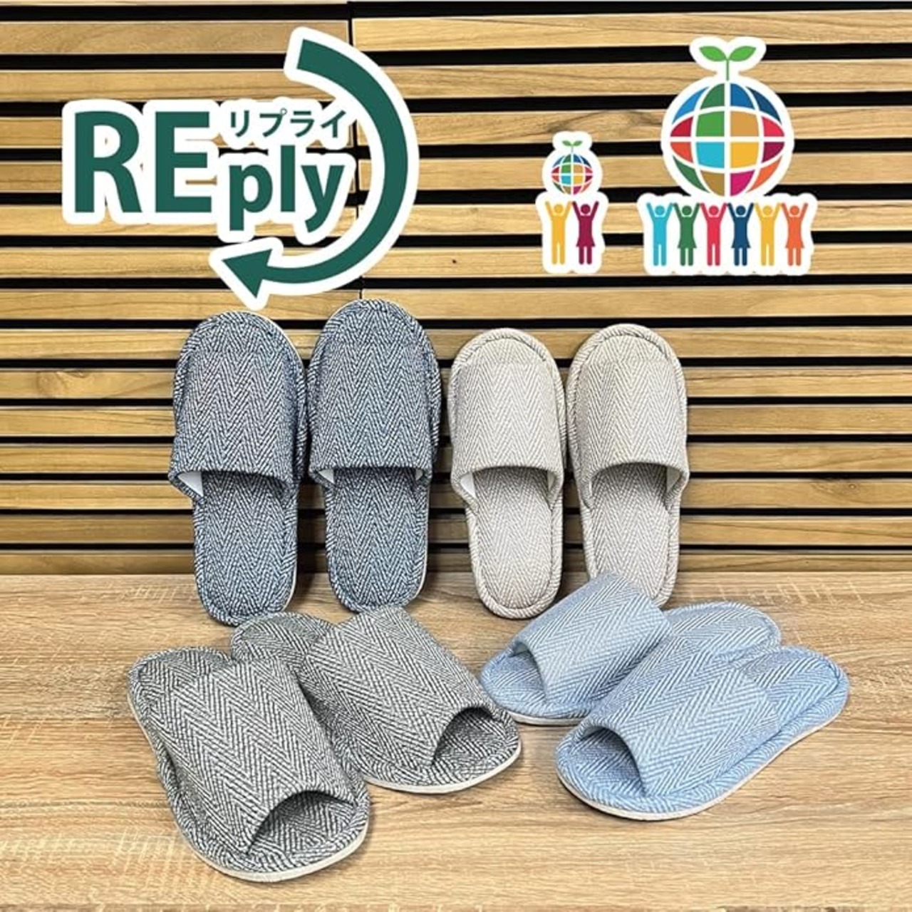 ☆いつもの品質で履いていただける小さなエコにみんなで参加してみませんか♪☆静音設計なので、お仕事が忙しい方や集合住宅にお住まいの方におすすめのルームシューズです♪☆REply の生地は廃棄プラスチックを原料とした再生繊維を100%使用しております♪