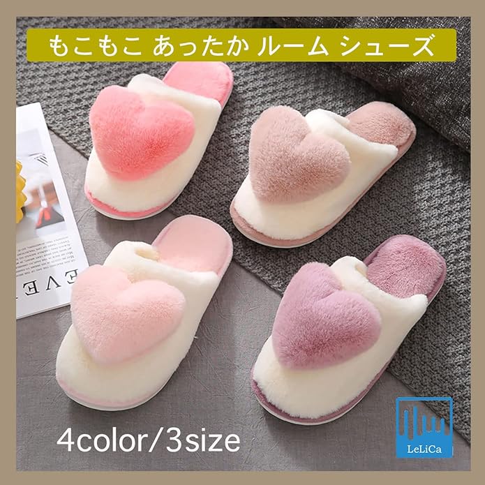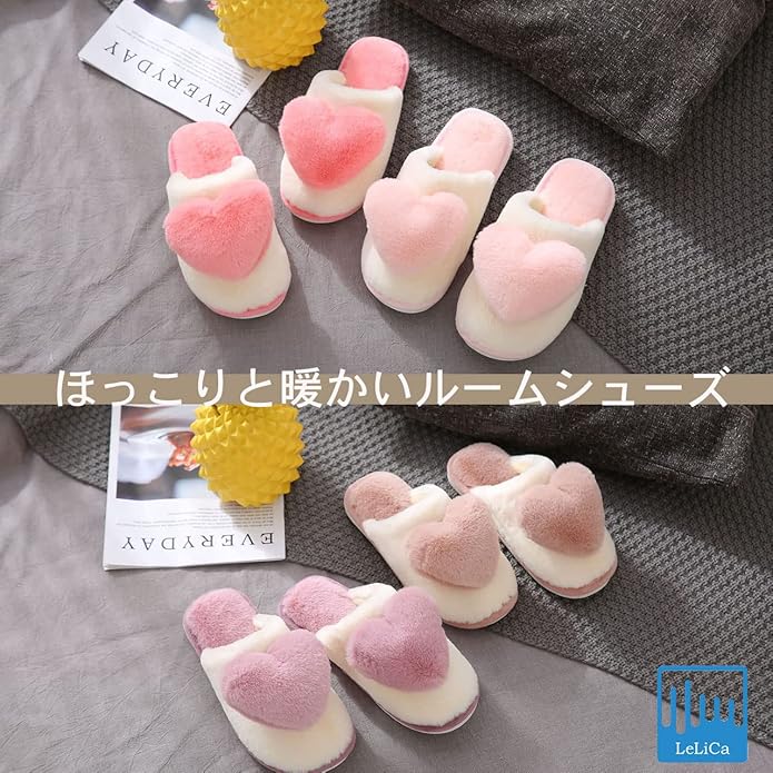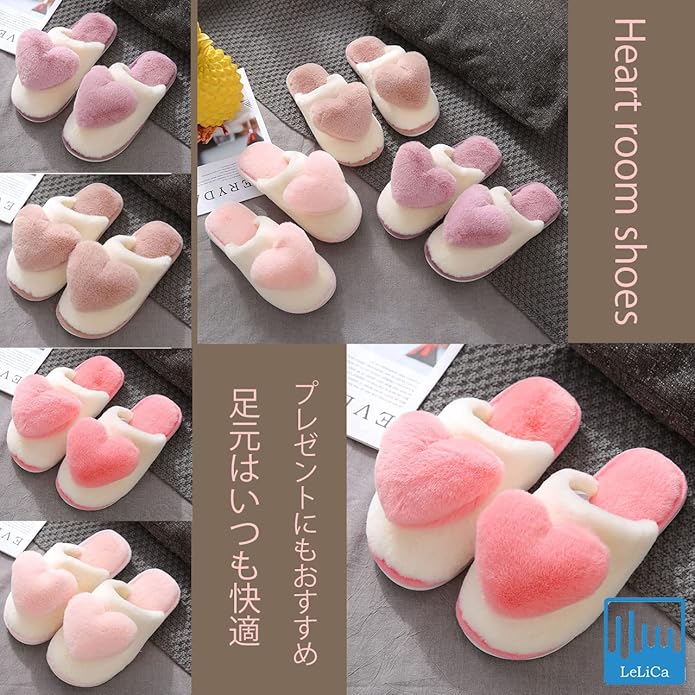 [レリカ] もこもこ あったか ハート ルーム シューズ 軽量 保温 スリッパ 室内 暖かい 防寒 厚底 履き ボア レディース