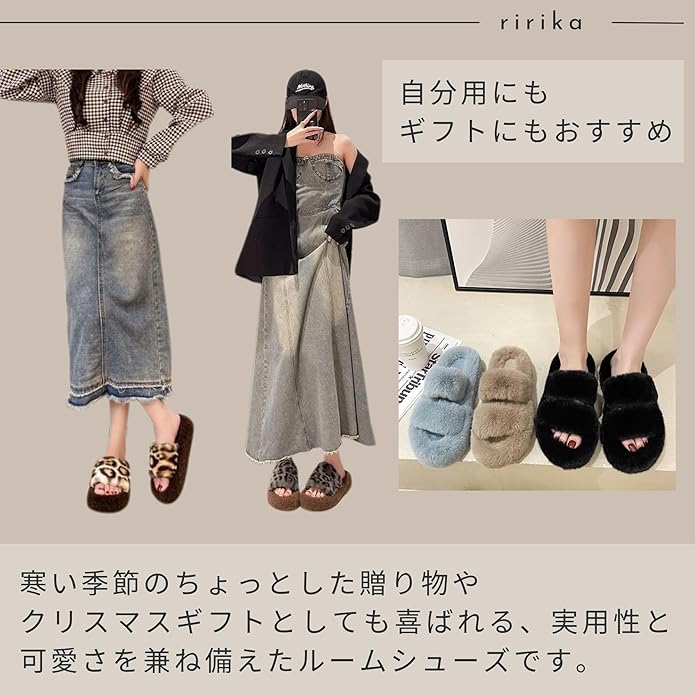 [ririka] リリカ ルームシューズ レディース ファー もこもこ ふわふわ スリッパ 滑り止め 室内履き サンダル あったかい 秋冬 かわいい お家用