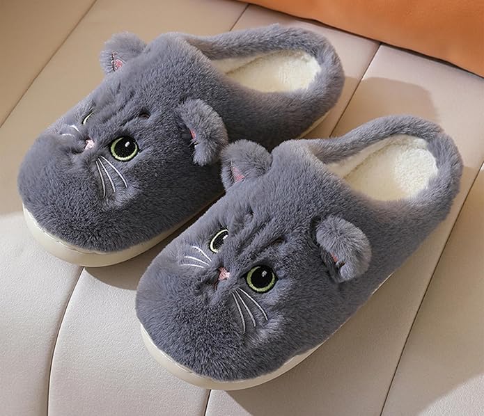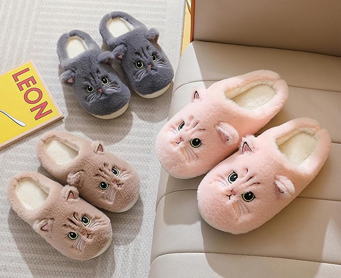[SHPEROWW] レディース メンズ ルームシューズ 猫 スリッパ かわいい ねこ 室内履き 部屋 あったか もこもこ 秋冬 防寒 滑り止め